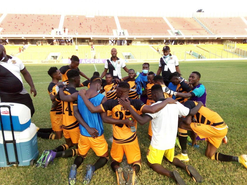 AshantiGold drew level on the stroke of halftime with a fine finish from Amos Addai after receiving an excellent pass from youngster Isaac Opoku Agyemang.