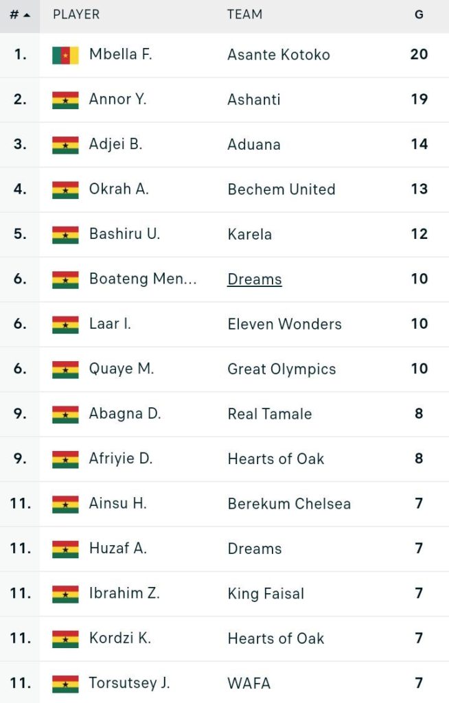 Etouga’s goal made him the league’s first player to reach 20 goals since 2013. In the race for the golden boot, he is one goal ahead of AshantiGold’s Yaw Annor.