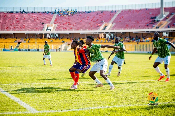 The game began at a frenetic pace, with both sides eager to assert early control. Hearts eventually found the breakthrough in the 40th minute Mawuli Wayo was rewarded with a goal courtesy a slight deflection and nestled into the net, giving the hosts a narrow halftime lead.