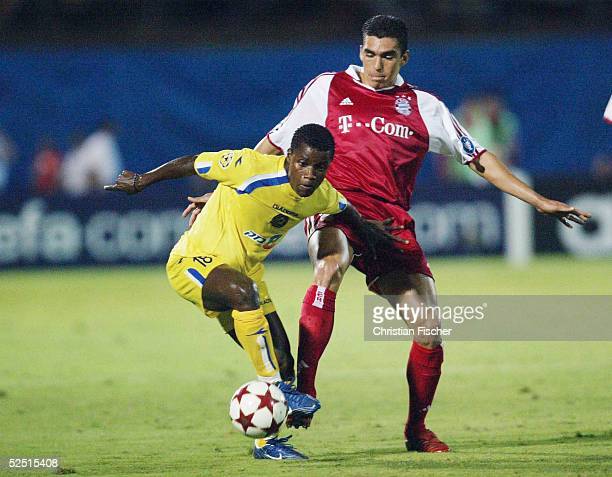 TEL AVIV, ISRAEL - SEPTEMBER 15: Fussball: Champions League 04/05, Tel Aviv; Maccabi Tel Aviv - FC Bayern Muenchen 0:1; Ishmael ADDO / Tel Aviv, LUCIO / Muenchen 15.09.04. (Photo by Christian Fischer/Bongarts/Getty Images)