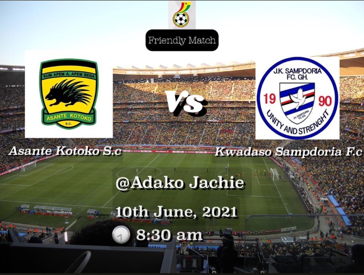 Asante Kotoko will play lower-tier side, Kwadaso Sampdoria FC in a low profile friendly at the Adako Jachie Training Complex on Thursday morning as the club prepares for Inter Allies in a premier league matchweek 29 game.