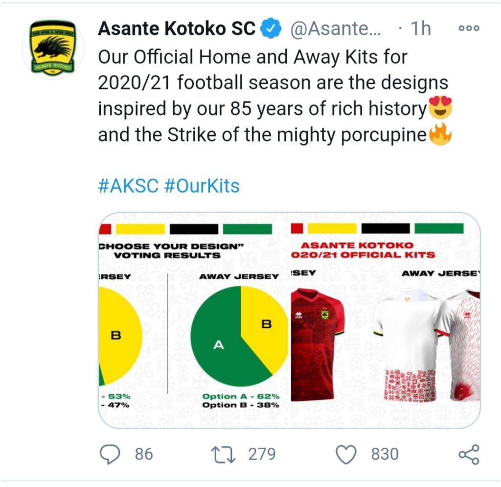 In a recent development, Nana Yaw Amponsah decided to allow Kotoko fans to decide which jersey they want the club to use in its 2020/2021 season. The club came up with a short-code for the fans to use in determining the jersey they want.