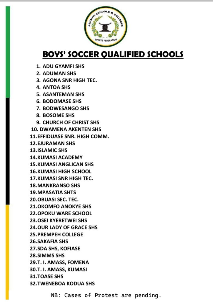 Check out the 32 qualified schools for 2023 Ashanti Regional Inter-school and Colleges Boys’ Soccer Competition; set to begin next week
