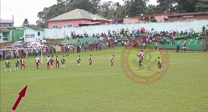 Fans rushed onto the pitch after referee Emmanuel Kofi Agudavi awarded a controversial penalty to Kwaebibirem- which sparked anger and chaos in Dawu.