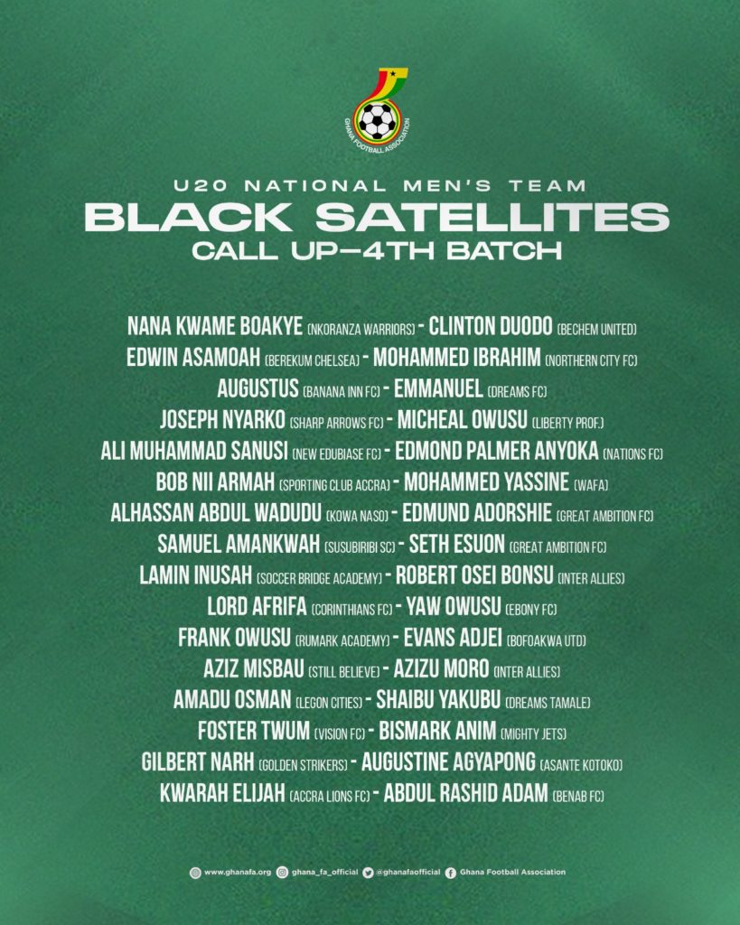 On Sunday, March 26, 2023, the fourth set of Black Satellites players will be required to report to the Ghanaman Centre of Excellence at Pram for a three-day evaluation and screening session.