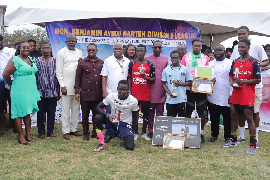 The Division 3 League, which was organized by the Accra East District Football Association and sponsored by Hon. Ayiku, was won by Sambo 4 FC after a hard-fought battle.