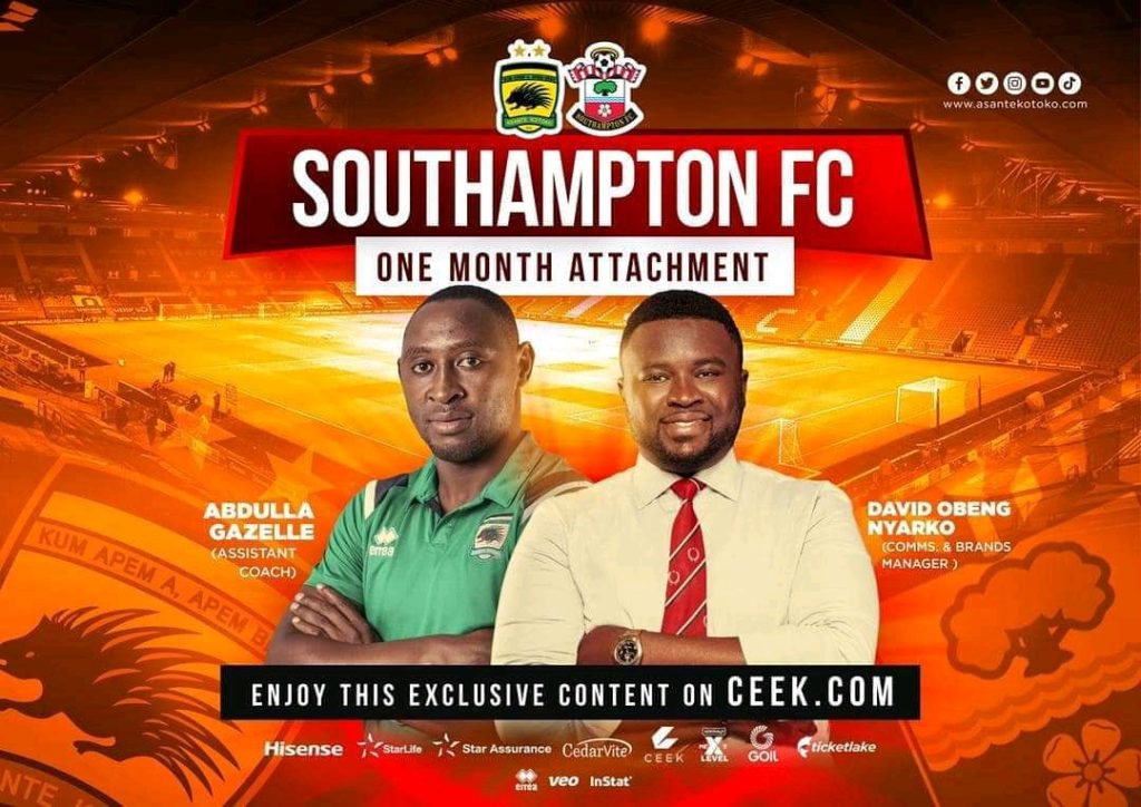 Asante Kotoko assistant trainer Abdulai Gazale and Communications and Brands Manager, David Obeng Nyarko left the shores of Ghana on Sunday, September 19, 2021 for attachment at the club’s partners, Southampton FC.