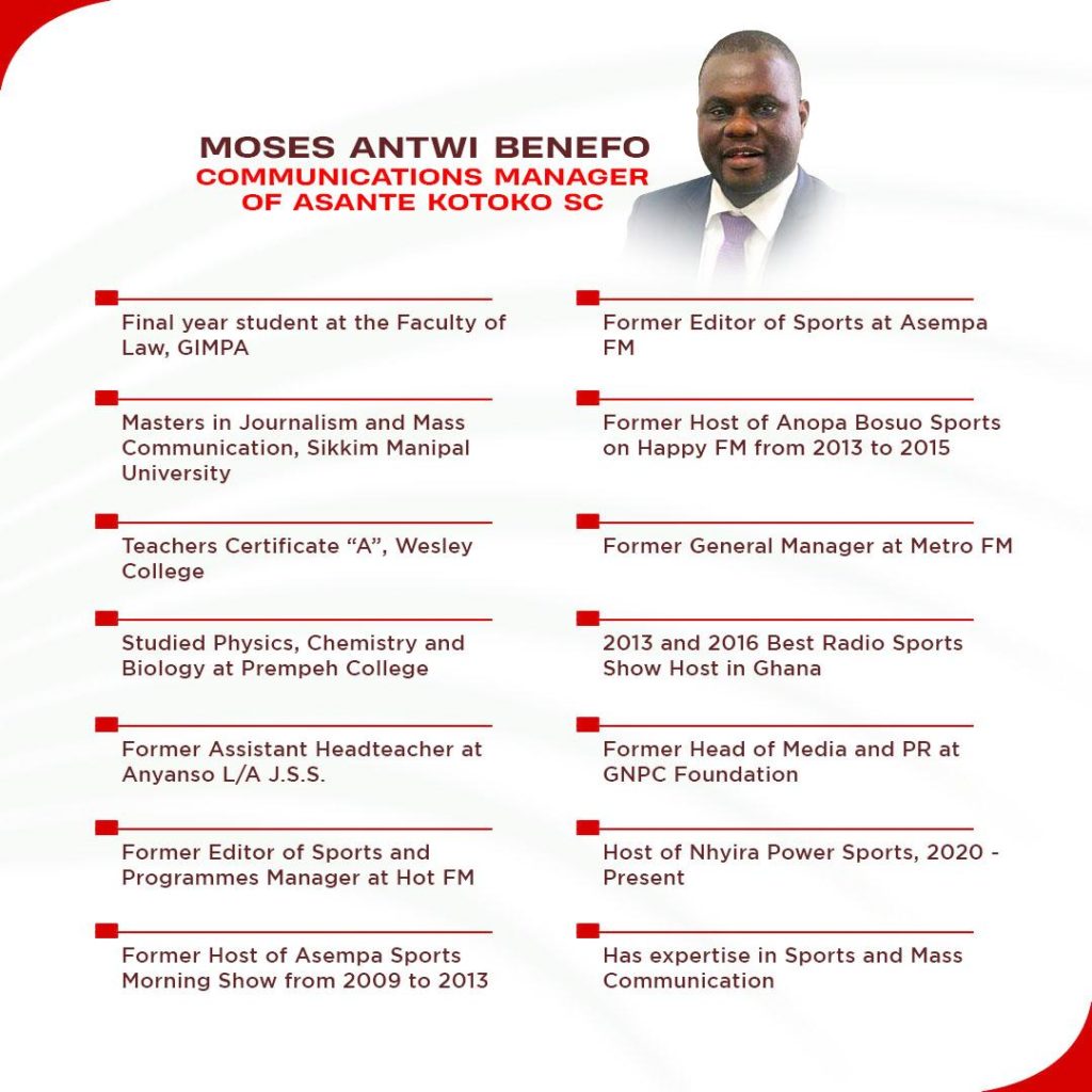Moses Antwi Benefo is Kotoko’s new Communications Director