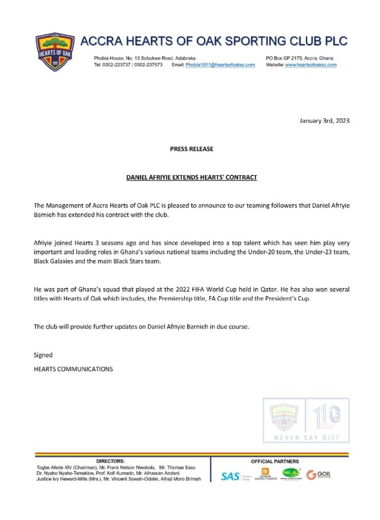 1 thought on “OFFICIAL: Daniel Afriyie Barnieh extends contract with Hearts Of Oak [CHECK DETAILS]
