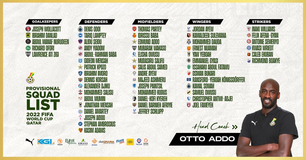 Black Stars head coach, Otto Addo, has named his 55-man provisional team for the 2022 FIFA World Cup.