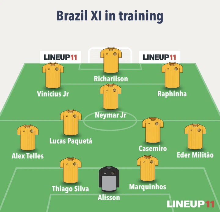 The source revealed that Brazil are testing a 4-2-3-1 formation in training with Real Madrid’s Eder Militao being a makeshift Right back in the backline as well as Tottenham’s Richarlison spearheading the attack.
