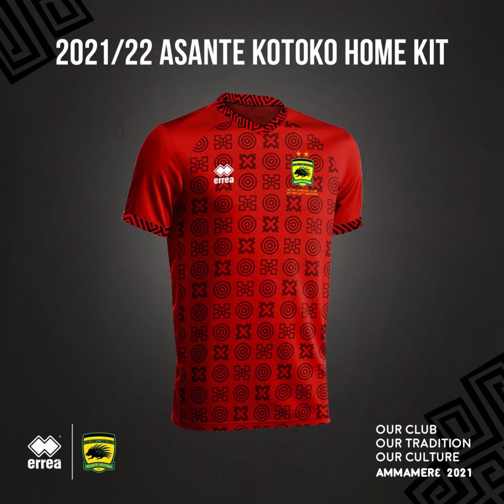 The new kit produced by italian sports manufacturing company, Errea features a blend of the club’s historic success, the traditions of the Ashanti Kingdom, and the cultural features of the Porcupine embed in the colours Red and Black.